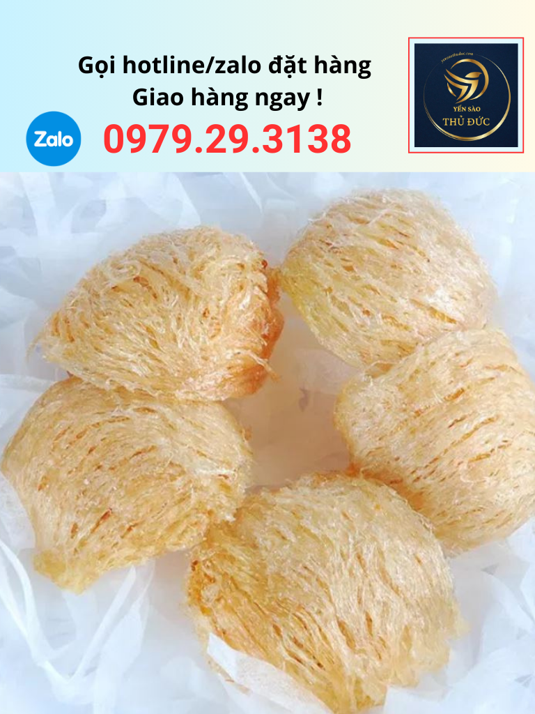 - 100% tổ yến nguyên chất khai thác tại các nhà yến ở địa phương, có nguồn gốc rõ ràng.