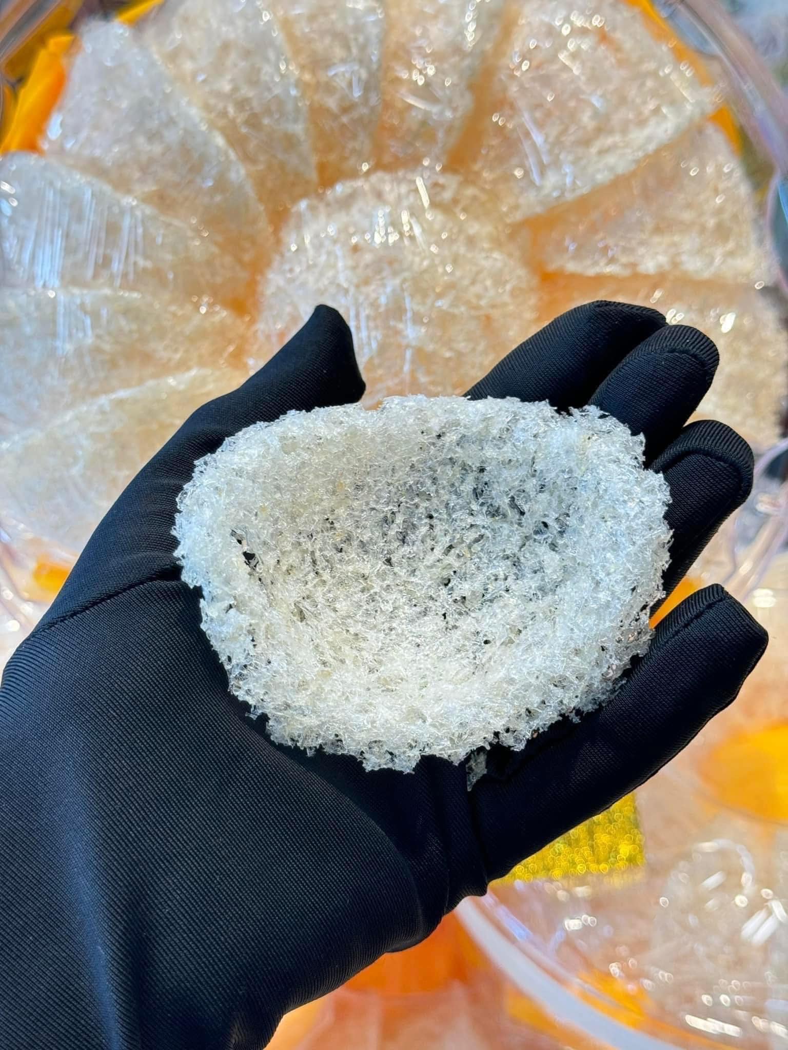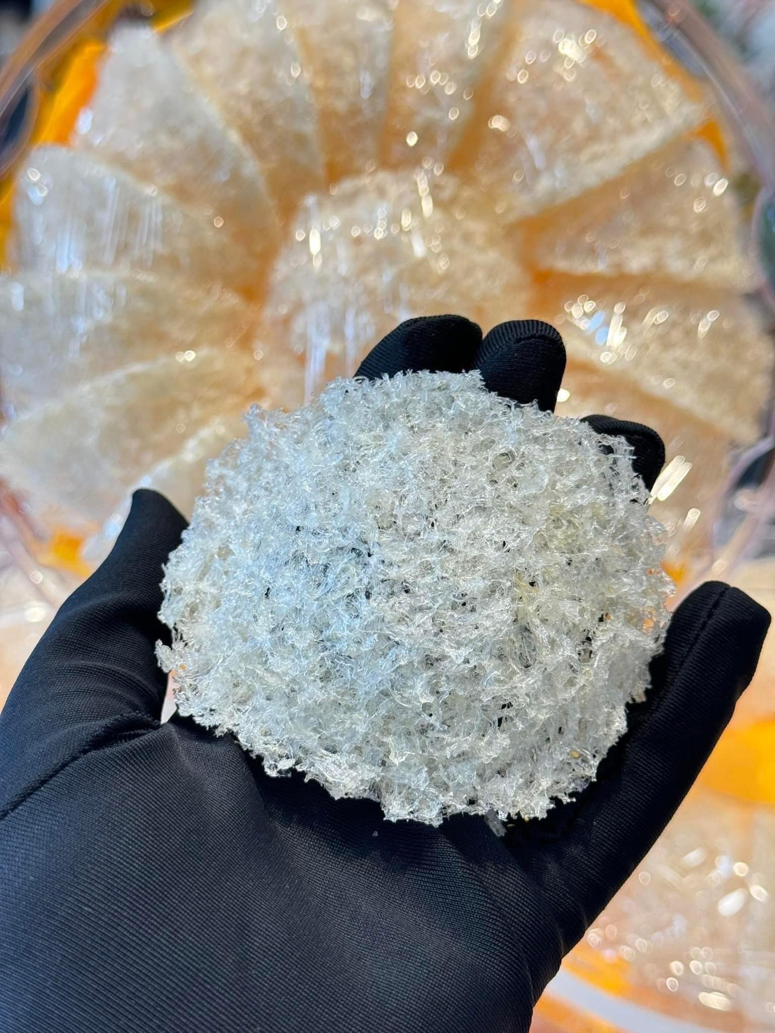 - Yến vụn tinh chế: Yến đã làm sạch lông và tạp chất và sấy khô như tổ yến tinh chế.