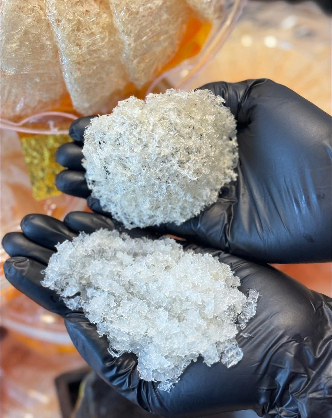 - Yến vụn thô: Yến nguyên chất nhất, vẫn còn nguyên lông và tạp chất khi vừa hái xong.